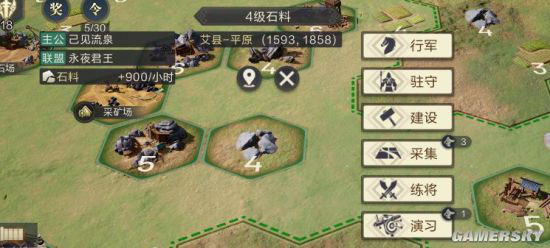 所以我方当然也要派出三位武将应战,如何摆放武将的站位也就成了重中之重。如果说四级地先打什么种类,当时是石头了(后续五级和六级地块首选依然是石头)。打完石头就可以在该地块上找到采集二字,至于为什么要大量采集石头,因为主公府升级时,对石头的消耗是很多的,如果不提前准备好,很容易卡节奏。