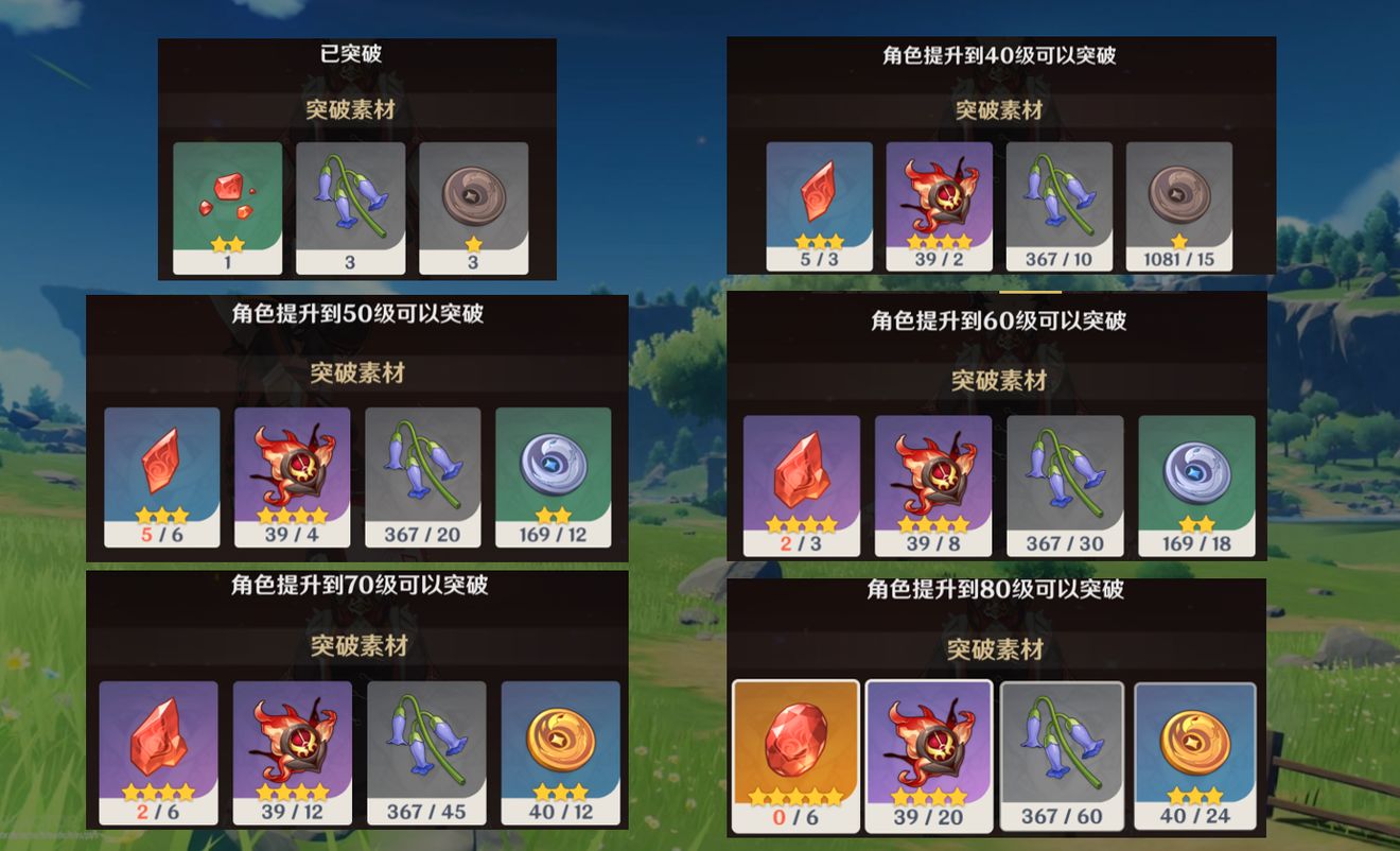 当然直接把突破材料采爆~就可以不用计算了,嘿嘿~