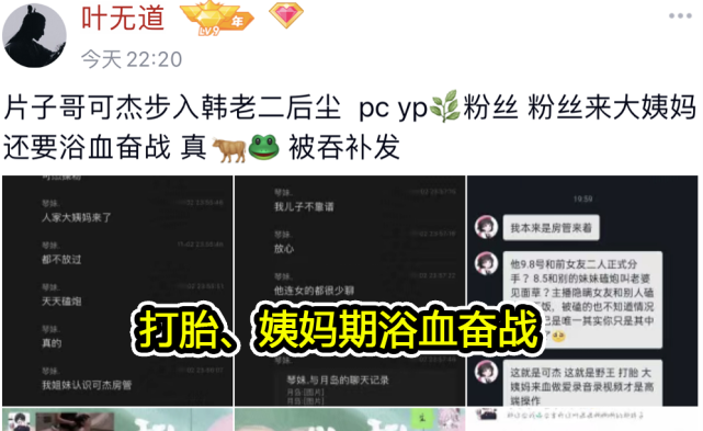 更令人惊讶的是,除了和女粉丝微信聊天尺度过大以外,爆料人还透露,可杰还有更多渣男行为,比如让前女友打胎、姨妈期浴血奋战等等。但是这部分内容并没有证据,爆料人也只有几张聊天截图,暂时还无法判断是 P 图捏造还是确有其事。从聊天截图来看,如果是真实的话,也是女生自愿的,而且女生还在聊天中表示已经谅解了可杰。