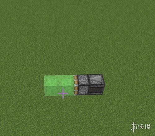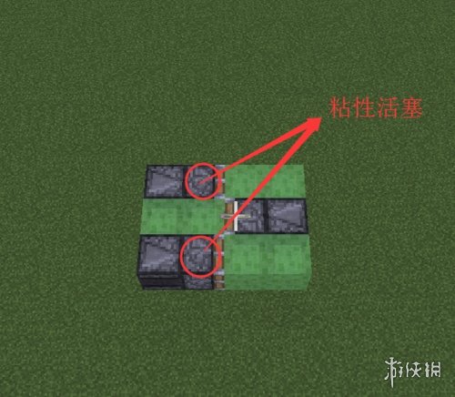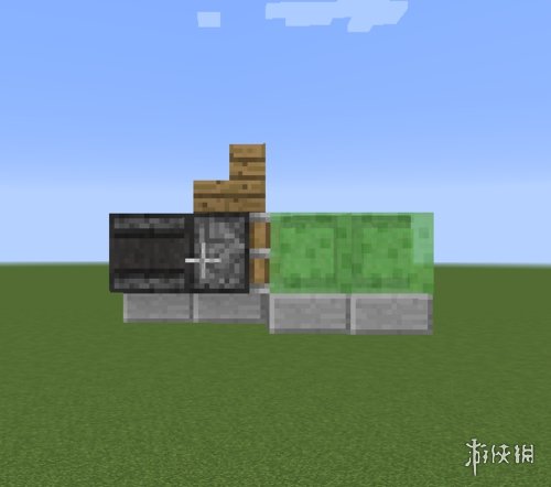 首先确定好高度后,放置一个活塞。活塞的前方放两个粘液块。