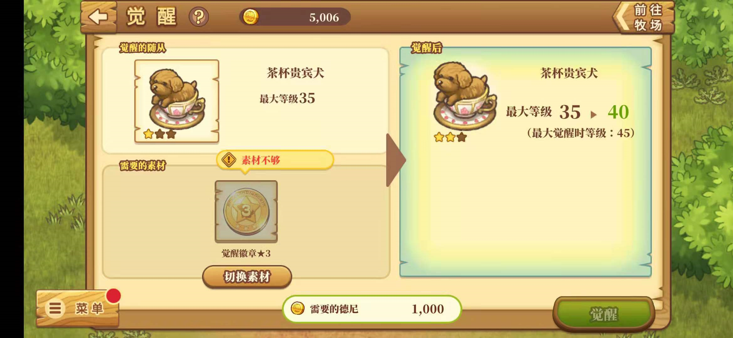 绵羊村的吉祥物乡绅鸡先生是一位真正的绅士,它总是彬彬有礼,知识渊博,对于随从更有一番自己独到的见解,它曾经说过,绵羊村没有弱小的随从,只有不会搭配的村长,合适的素材可以激发随从的力量,提升星级,觉醒徽章和同类随从都可以作为觉醒的素材,对觉醒徽章最了解的人莫过于加工屋的朱利安先生了。