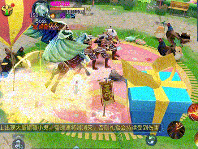 除此之外,还有一些破坏糖果礼盒的怪物等待被解决!活动期间 11:00-14:00、18:00-21:00 限时开放,需要三人及以上玩家组队,在保护糖果礼盒在不被场上小妖毁坏的同时,击杀嗜甜精怪。10 分钟结束后将根据糖果礼盒剩余血量发放礼包奖励!