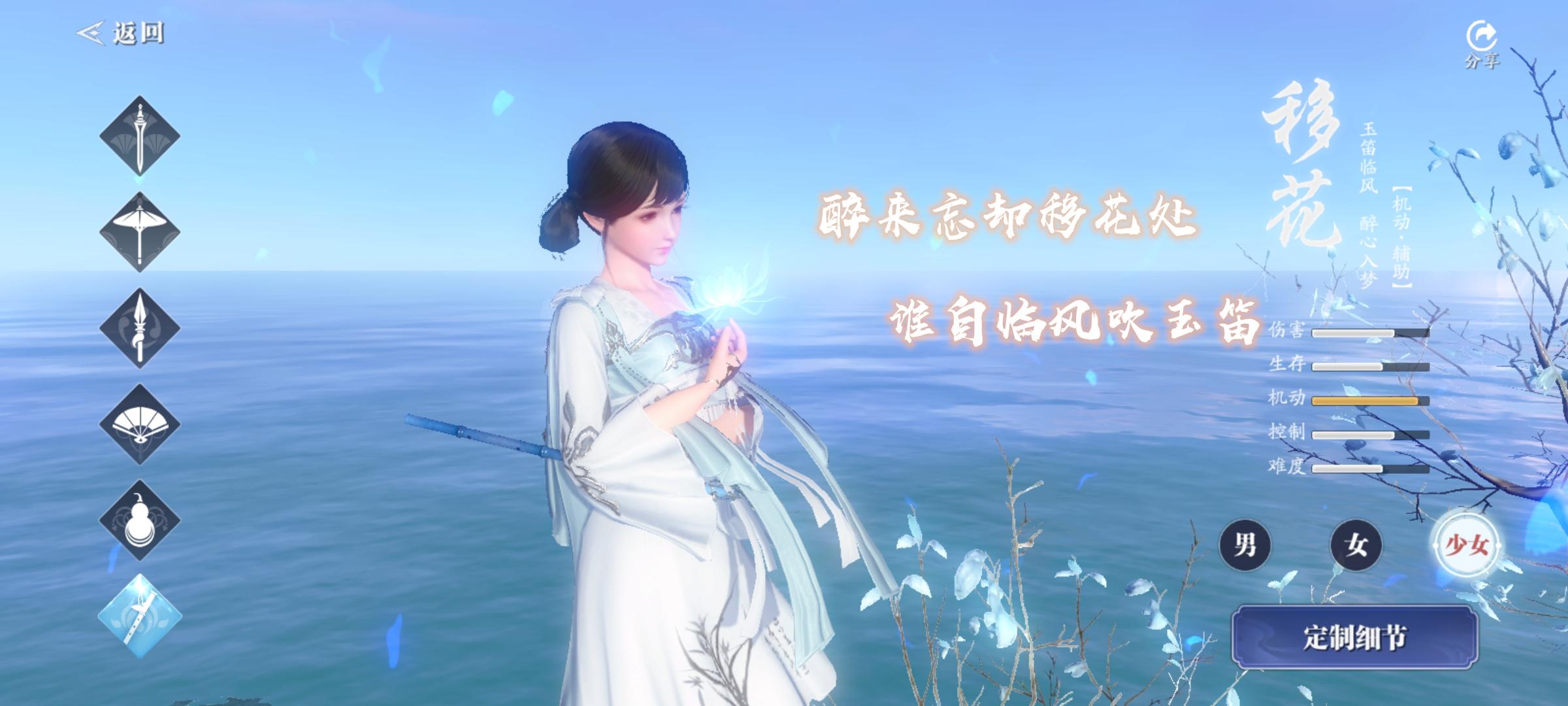移花一门一直以来流传着一句十分贴切的玩笑话“学医奶智障,切剑救八荒”。作为一个拥有两套功法的职业,移花门派一套输出心法一套治疗心法的特色在天刀手游里完美的继承了下来。只不过在天刀手游中移花的输出能力并没有端游中那么强势,反而在辅助控制方面有了极大的加强。因为在天刀手游中移花集位移、控制、免疫部分控制为一体,所以导致移花弟子的保命能力在八荒门派中都是出了名的。