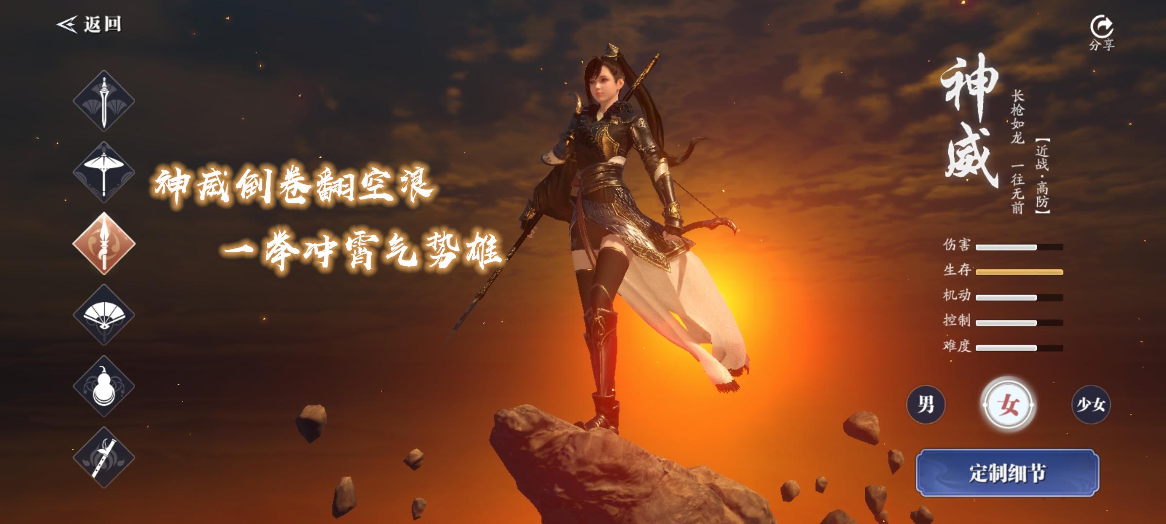神威轻功狂拽炫酷,大轻功一蹦三尺高,只要操作得当,就像“窜天猴”一样“嗖”的一下不见影踪,所以当年在端游里大家都给神威叫窜天猴。但是在天刀手游中大家的轻功都有了明显的长进,一蹦三尺高也变得平平无奇,一苇渡江也不算什么难事了。所以以后窜天猴这个名号估计是没什么人叫了。云龙五现这个名字各位老玩家再熟悉不过了,端游中神威的五连技能在手游中成了一个需要接续释放的连招。最后要提醒大家一点,像“背水十字枪—五连”这种连招在手游中是无法实现的。